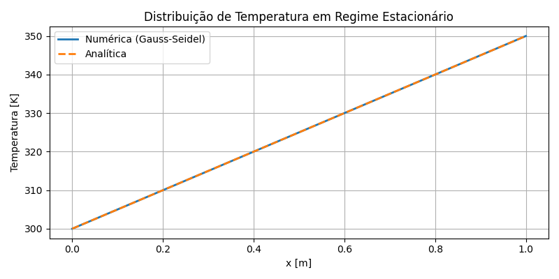 Essa equação gera um sistema linear tridiagonal, com as temperaturas desconhecidas nos nós internos.